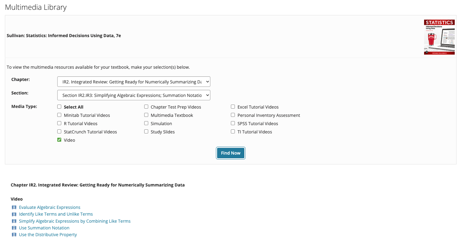There are many new lecture videos by author Michael Sullivan that have been updated to provide a detailed presentation of the material, improve audio quality, and address accessibility requirements.